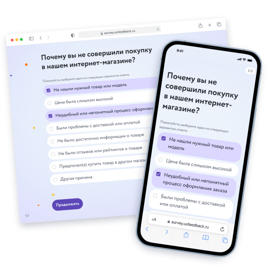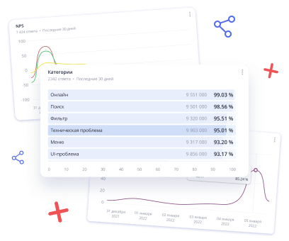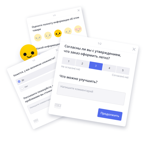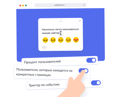 Узнайте, что ваши пользователи думают о сайте, с какими проблемами сталкиваются, замеряйте метрики лояльности и многое другое.
