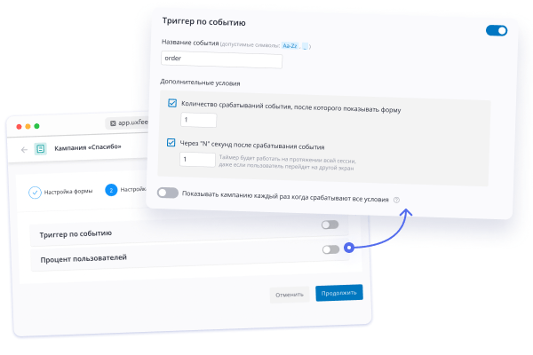 В продукте для веб-сайтов установка происходит в несколько кликов. В личном кабинете UX Feedback вы получите уникальный скрипт своего проекта. Его нужно лишь раз установить через Google Tag Manager или прямо в код сайта. После этого вы сможете создавать любое количество форм.