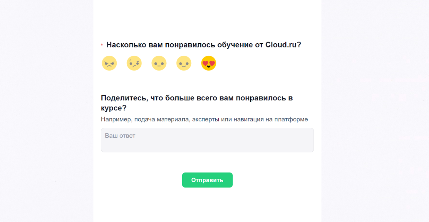Например, они могут оценить, что мы рассказали про IaaS в одном курсе. А для какой-то аудитории мы поняли, что будем делать отдельный курс по PaaS-сервисам, потому что нужно более технически глубоко подготовить клиентов. И это тоже благодаря тому, что мы оперативно увидели ответы в обратной связи от пользователей.